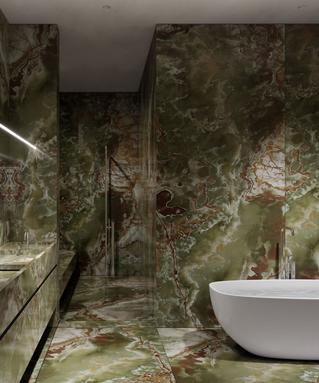 Апартамент предлагается с отделкой натуральными материалами с применением мрамора и ценных пород дерева.